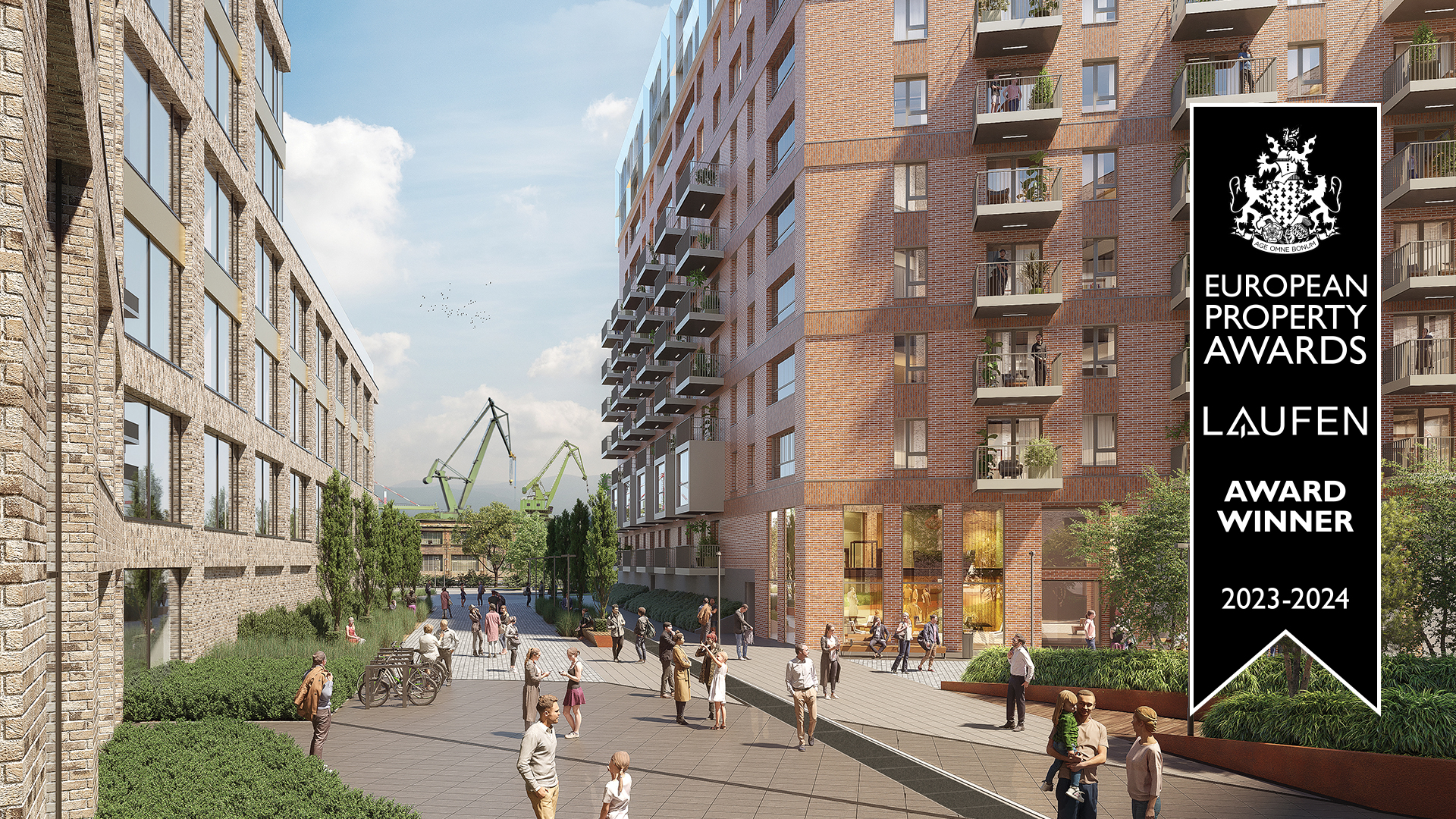 Żurawie – inwestycja typu mixed-use, zlokalizowana na terenie Młodego Miasta w Gdańsku, została zaprojektowana z myślą o przyszłych mieszkańcach oraz lokalnej społeczności. Jej koncepcja opiera się na industrialnym charakterze, który obejmuje między innymi takie elementy architektury, jak ceglane elewacje – formą i kompozycją nawiązujące do hal stoczniowych oraz panele aluminiowe na wyższych kondygnacjach, które nawiązują zarówno do metalicznych konstrukcji statków, jak i charakterystycznych portowych żurawi. Za projekt odpowiadają światowej sławy fiński architekt, profesor Rainer Mahlamäki, autor wielokrotnie nagradzanego Muzeum Żydów Polskich POLIN w Warszawie, a także polskie pracownie Latergrupa Architekci oraz GCK Architekci.