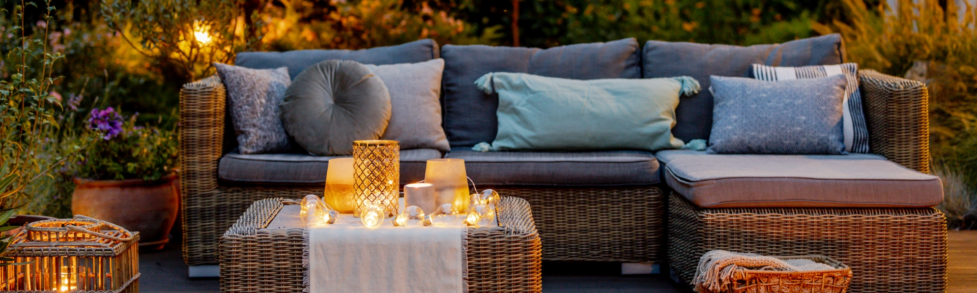 Dopełnieniem mebli na jesiennym tarasie będą klimatyczne dodatki. Kompletowanie akcesoriów rozpocznij od tekstyliów: miękkiego koca oraz poduszek. Relaksując się i podziwiając widoki, nie zmarzniesz, jeśli zarzucisz na siebie ciepły koc, najlepiej w jesiennych barwach. Jeśli jesteś właścicielem zwierzaka, ułożony na meblach pled stanowić będzie dla nich przyjemne źródło ciepła. Nie musisz się obawiać o przechowywanie tekstyliów i innych dodatków w razie niepogody. Wiele mebli ogrodowych posiada schowki.