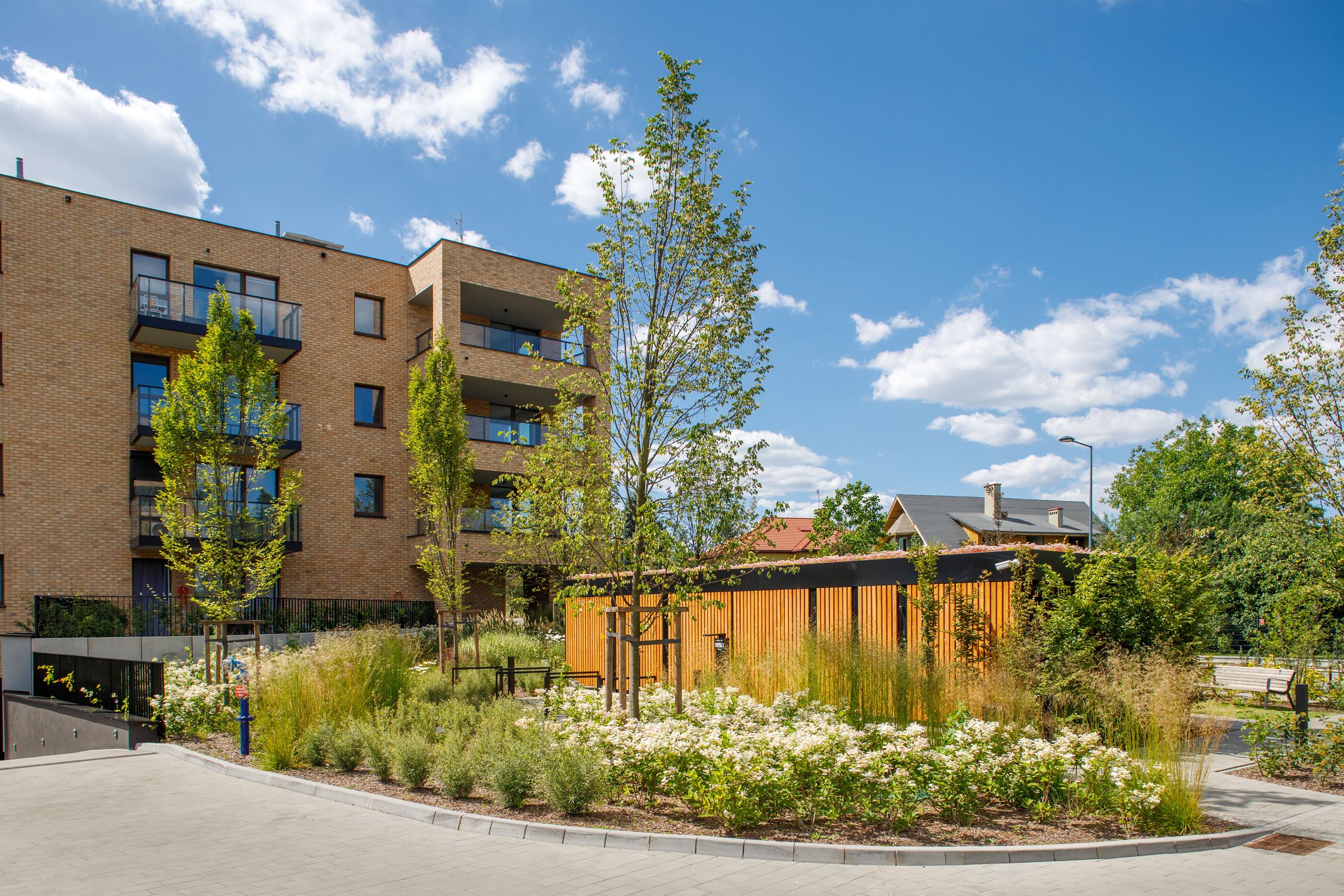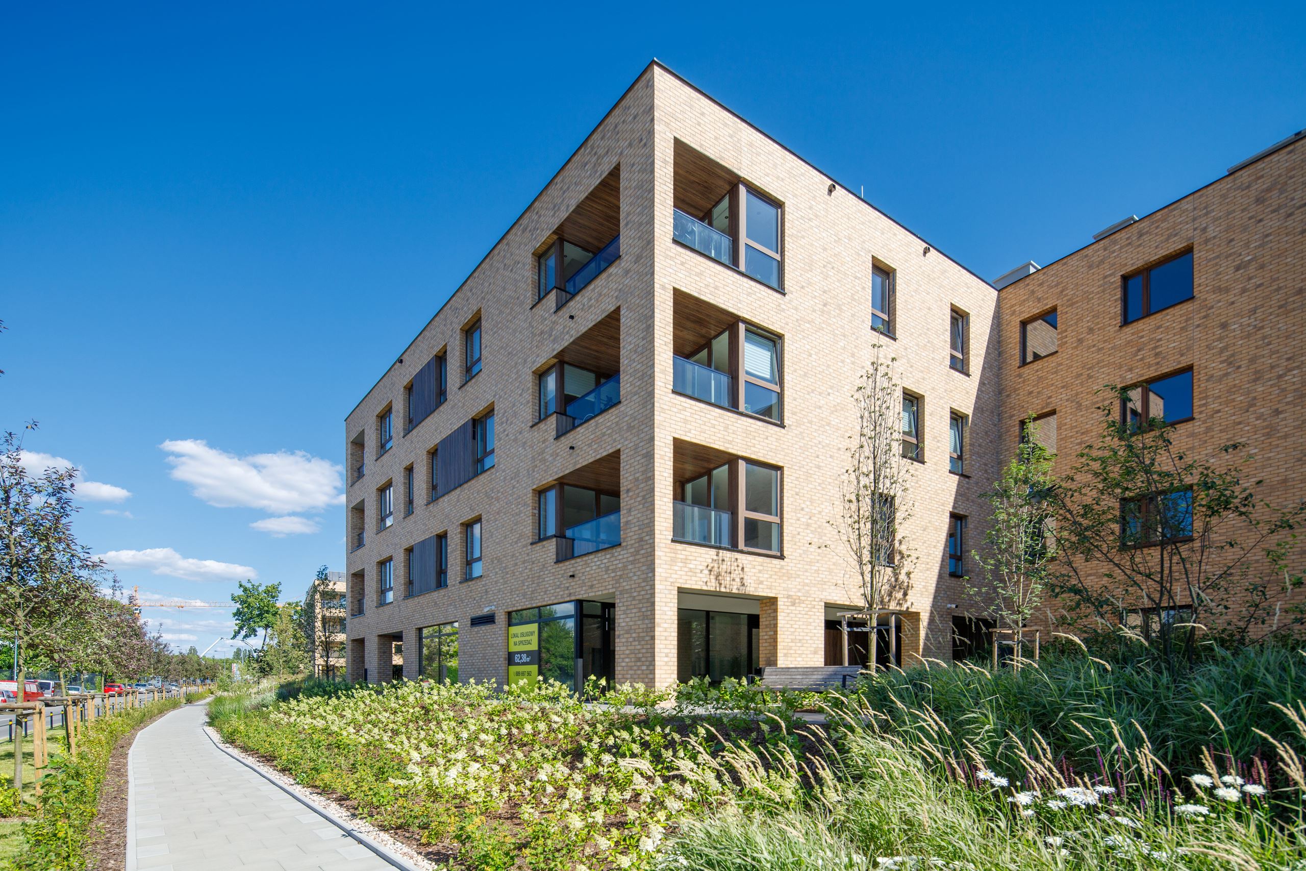 Całość utrzymano w fińskim, minimalistycznym stylu, z elegancką klinkierową elewacją, która nadaje budynkom ponadczasowy charakter. Niska, maksymalnie czterokondygnacyjna zabudowa sprawia, że projekt pozostaje kameralny i naturalnie wpisuje się w otoczenie.
